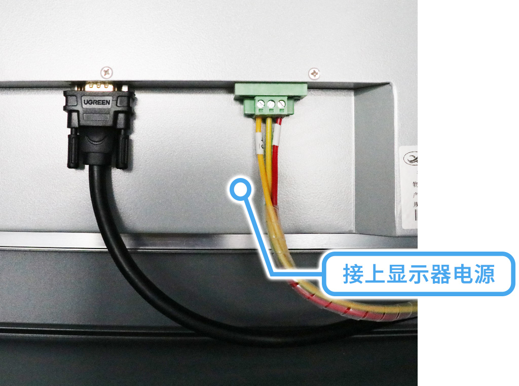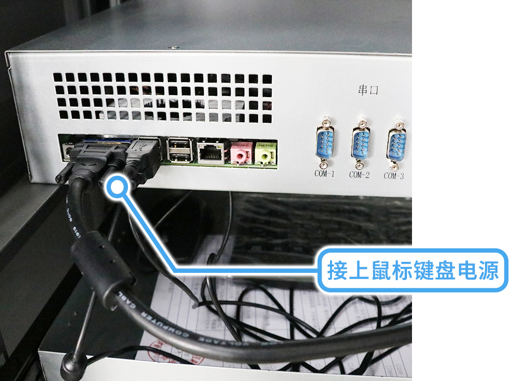 翻轉(zhuǎn)到主機(jī)背面,打開后接上顯示器電源,鼠標(biāo)鍵盤電源;